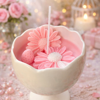 Interiorul lumânării este decorat cu flori delicate în tonuri de roz pastel, atent modelate manual, ce amintesc de prospețimea florilor de primăvară și de momentele pline de emoție. Aroma plăcută și intensă se eliberează treptat, creând o atmosferă cozy, relaxantă și feminină, ideală pentru momente de liniște, seri speciale sau pentru a transforma un colț al casei într-un spațiu de poveste.