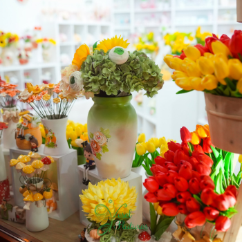 Vaza din ceramică adaugă stabilitate și eleganță, completând perfect delicatețea florilor. Împreună, creează un obiect decorativ cu prezență caldă, rafinată, gândit să aducă primăvara în orice spațiu, fără a necesita apă sau întreținere. Este o opțiune ideală pentru cei care doresc să aducă frumusețea naturii în spațiul lor fără a se baza pe flori proaspete. Florile nu sunt fixate în vază însă ele pot fi înlocuite sau scoase și vaza poate fi folosită pentru flori naturale, de exemplu. Vaza vine la pachet cu cele 11 lalele care se pot modifica culoarea lor dacă avem pe stoc alte culori.